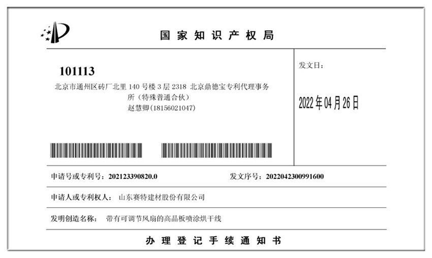 公司高晶板智能烘干線主要用于高晶板表面防水涂層噴涂、烘干及自動(dòng)包裝等后處理工藝。在投產(chǎn)之前,公司董事長(zhǎng)親自掛帥,組建科研攻關(guān)小組,通過(guò)與多所科研院校合作,主要在四個(gè)領(lǐng)域?qū)崿F(xiàn)了突破:一是數(shù)字化,生產(chǎn)線能根據(jù)高晶板生產(chǎn)批次、原料配比、環(huán)境溫度、進(jìn)板速度自動(dòng)調(diào)整噴涂濕度和烘干溫度,產(chǎn)品表面的流平性和光澤度有了較大提升,防水涂層牢固不易脫落;二是智能化,整個(gè)生產(chǎn)過(guò)程無(wú)需人工控制,“人工智能控制中心”能根據(jù)各項(xiàng)參數(shù)實(shí)時(shí)調(diào)整入料、噴涂、烘干、輸送、整形、堆疊、包裝、碼垛、轉(zhuǎn)運(yùn)等各生產(chǎn)環(huán)節(jié),提升生產(chǎn)效率;三是環(huán)保化,在烘干環(huán)節(jié),利用本公司生產(chǎn)的“雙層玻纖夾腔熱膨脹顆粒復(fù)合保溫材料”對(duì)設(shè)備外體覆蓋包裹,熱傳導(dǎo)率降低至0.03W/mK以下,能有效降低能源浪費(fèi),相應(yīng)國(guó)家雙碳號(hào)召;四是自動(dòng)化,充分利用機(jī)械手臂,降低工人勞動(dòng)強(qiáng)度,助力公司向智能化工廠轉(zhuǎn)型,最終實(shí)現(xiàn)黑燈工廠。目前,所有研發(fā)成果均已申請(qǐng)專(zhuān)利,專(zhuān)利成果陸續(xù)下證中。